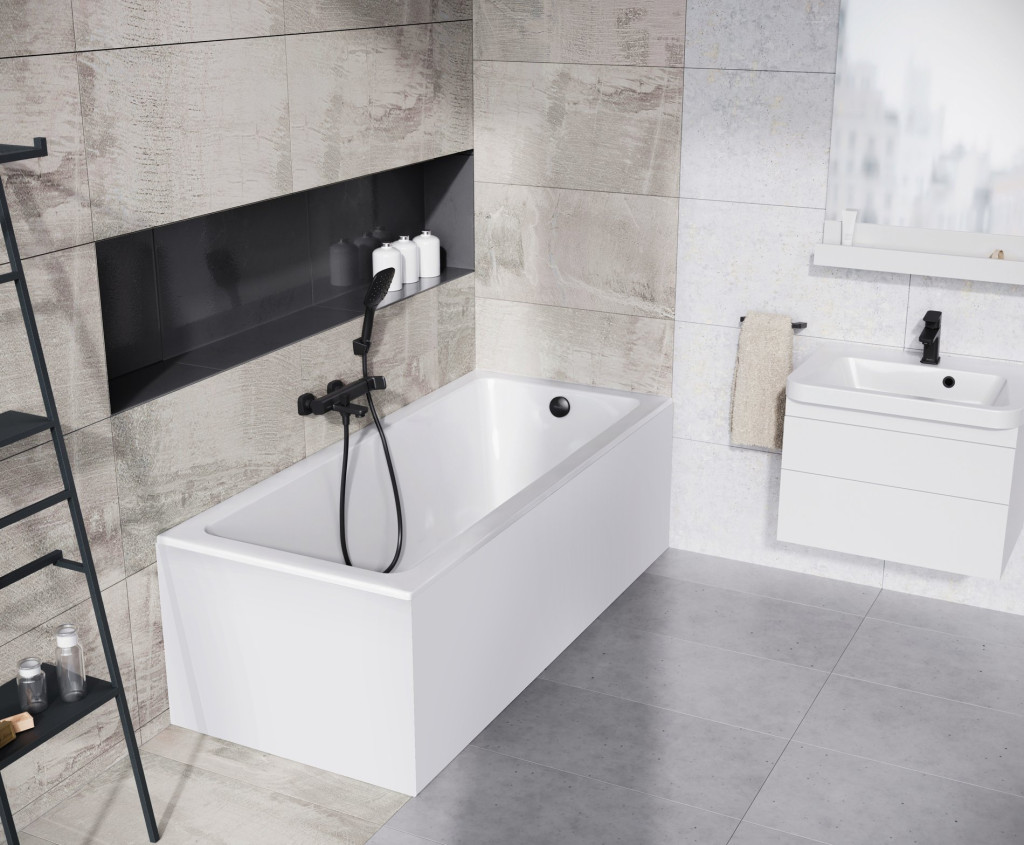 Falra szerelhető kádcsaptelep 10° Free, zuhanykészlet nélkül. Matt fekete kivitelben.