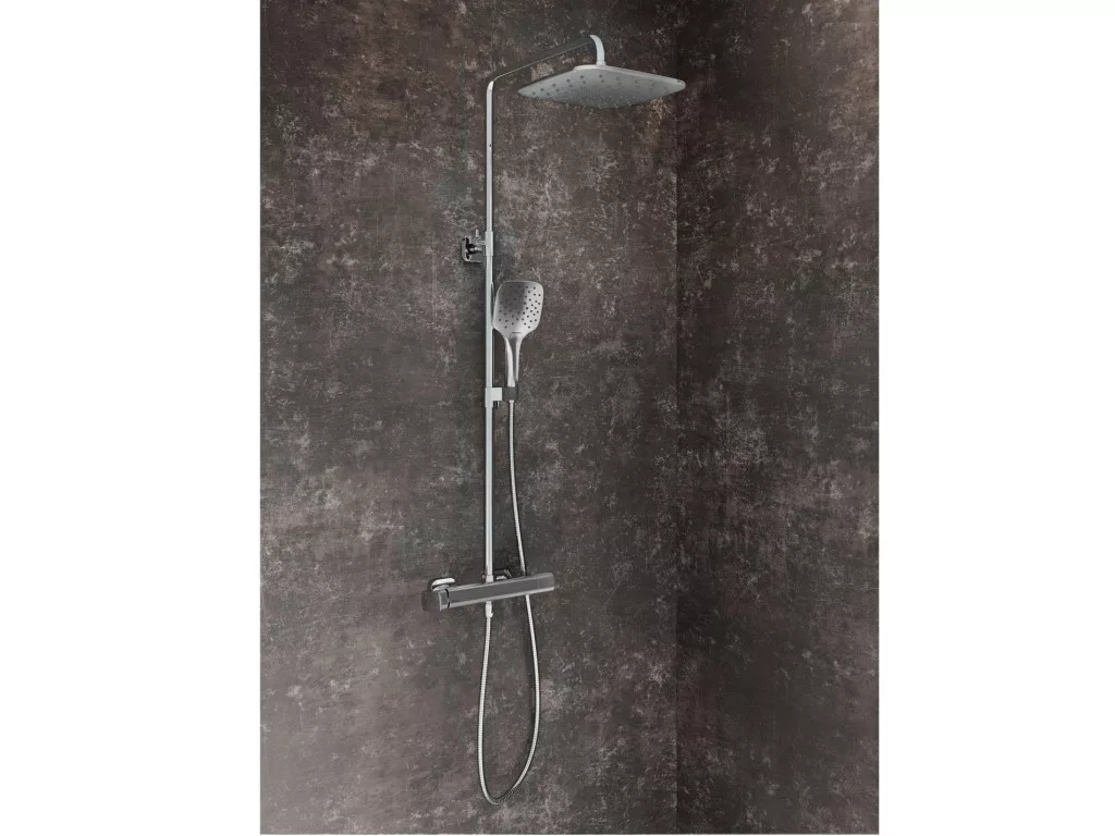• zuhany kivitel: négyzet alakú ABS fejzuhany 25 cm; kézi zuhany - 3 funkció, a fejzuhany oldalra is forgatható
