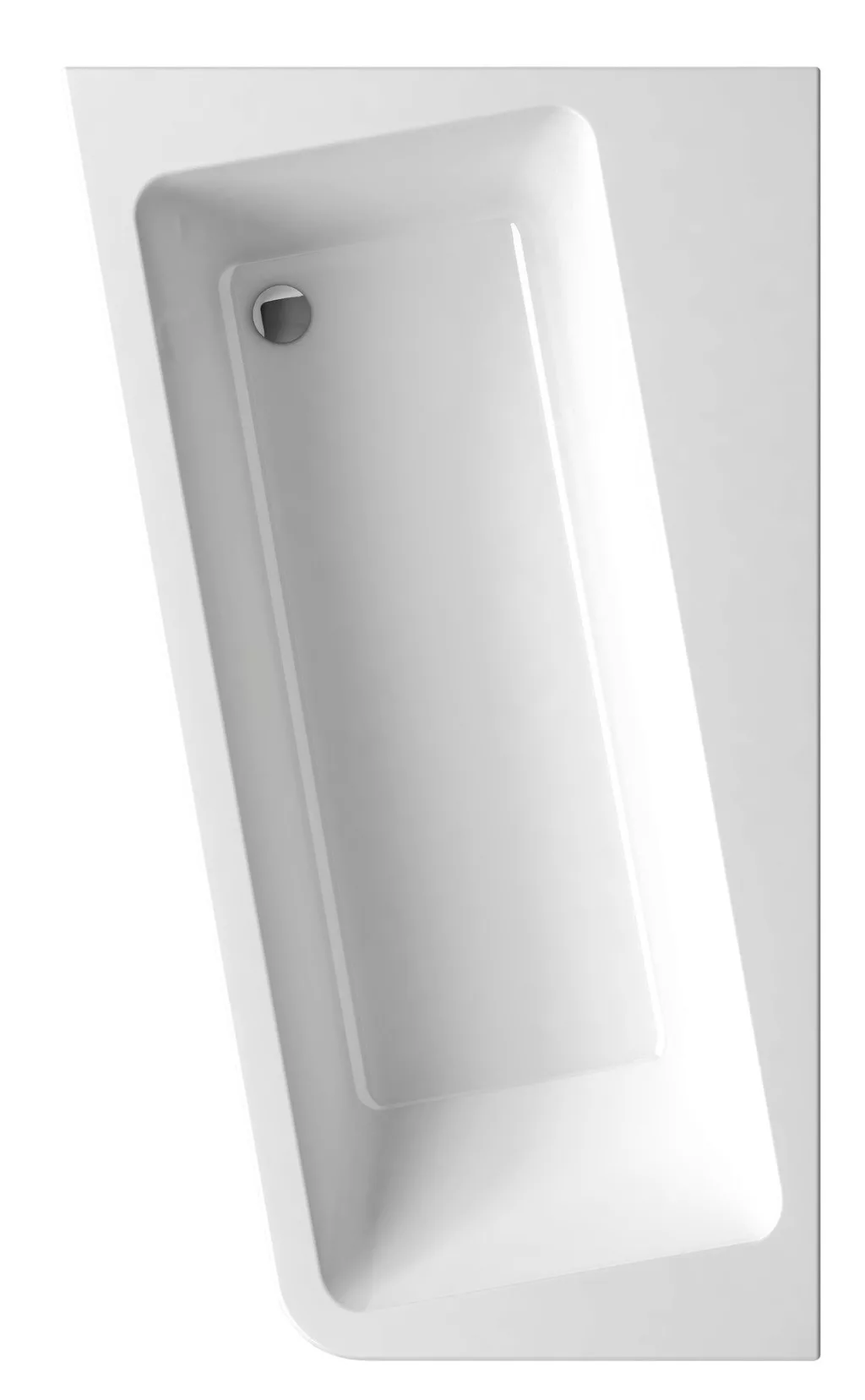 Az aszimmetrikus 10° fürdőkád a sarokba illik és kissé ferde. A tervező, Kryštof Nosál, egy téglalap alakú kádat vett és 10 fokkal elforgatta. Az új szög nem csak esztétikus, hanem praktikus is - több tárolóhelyet biztosít. Bal oldali változat.