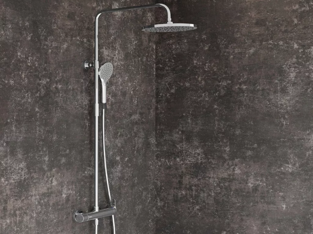 Állítható zuhanyoszlop zuhanyszettel, fényes króm kivitelben.
