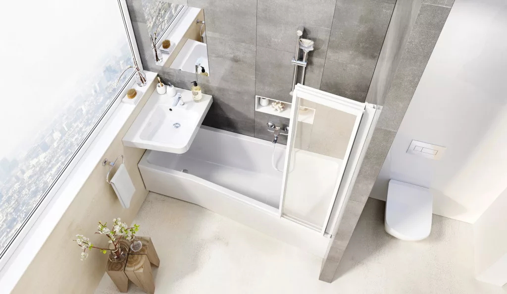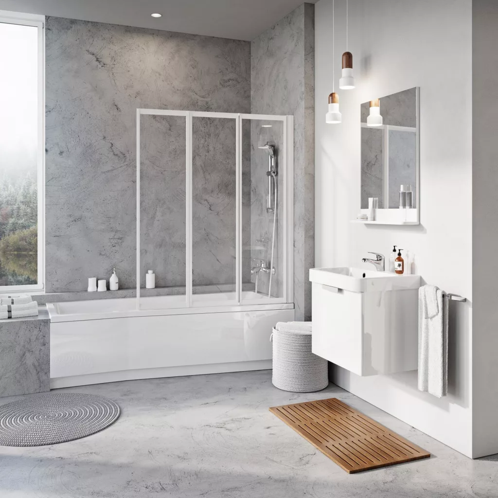 Ha a VS3 fürdőkád paravánt hozzáadja, a fürdőkádból szükség esetén tágas zuhanykabin lesz.