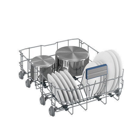 Az evőeszköz tálca elegendő helyet biztosít az evőeszközök és az apróbb dolgok elhelyezésére és saját permetezési szinttel is rendelkezik. Ennek köszönhetően az alsó kosárban több hely szabadul fel a nagyobb edények számára.