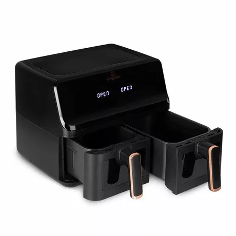 A Dupla AirFryer (2700 W) – Black Rose Collection egy sokoldalú konyhai eszköz, amely segít az egészséges és ízletes ételek elkészítésében. Az elegáns megjelenés és a praktikus funkciók egyesítésével a dupla airfryer egy igazi kincs lehet a konyhádban. A XXL méret és a digitális kijelző csak néhány a sok előny közül, amelyeket ez a készülék nyújt.