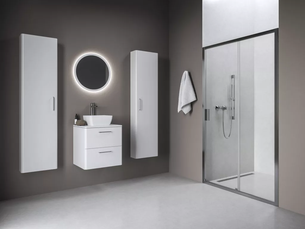 Blix II kétrészes zuhanyajtó krómhatású kivitelben, átlátszó biztonsági üveggel és Ravak AntiCalc® vízlepergető réteggel. Tolóajtós rendszer. Forgatható termék bal és jobb oldali változat kialakításához.