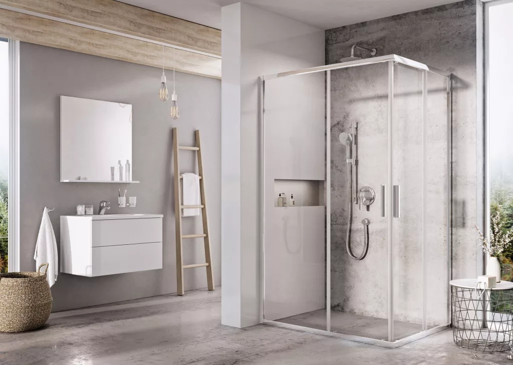 Fél oldal Blix Slim sarokzuhanykabin kialakításához, fényes krómhatású kerettel, átlátszó biztonsági üveggel és Ravak AntiCalc® vízlepergető réteggel. Tolóajtós rendszer. A termék egy fix és egy mozgó részből áll. A komplett zuhanykabin kialakításához 2 termék megvásárlása szükséges.