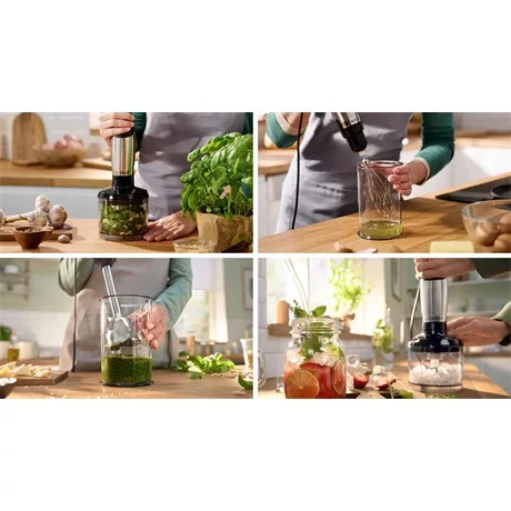 • Aprító fűszernövényekhez, diófélékhez, sajthoz, húshoz és sok máshoz (500 ml hasznos térfogat), beleértve a jégaprító pengét jégkockákhoz