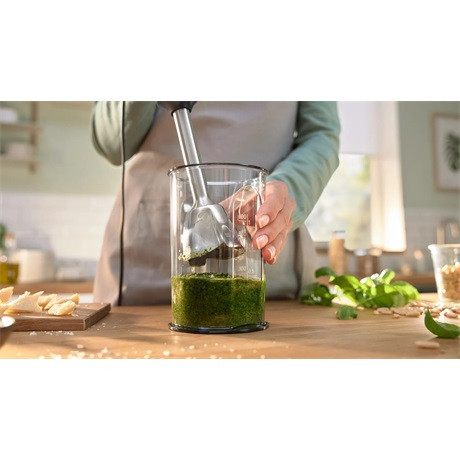 Gyakran készít kisebb adagokat? A praktikus keverő-/mérőpohárral kimérheti az összetevőket, és közvetlenül a pohárban mixelheti össze a kisebb mennyiségeket. Ezzel időt lehet megtakarítani.