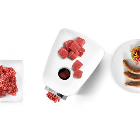 Akár hamburgerről, akár kolbászhoz van szó, finomra darál húsból ízletesebb lesz az étel. A húsdaráló nagy teljesítménnyel működik, és az összetevőket egyenletesen, a lehető legrövidebb idő alatt dolgozza fel.