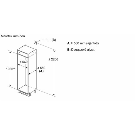• Beépítéshez szükséges minimális szélesség: 560 mm