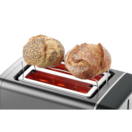 • Fokozatmentes pirítási erősség-szabályozó gomb, integrált melegítőráccsal