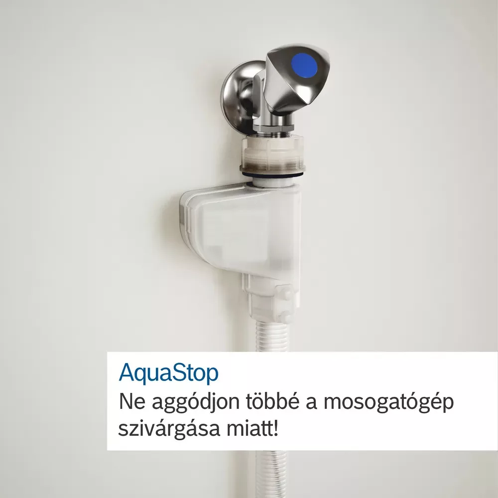 A vízkár elleni védelem elengedhetetlen a mosogatógépeknél. Aqua Stop rendszerünk megbízható vízszivárgás elleni védelmet nyújt. Ha a szenzor szivárgást érzékel, a mosogatógép automatikusan leáll és a duplafalú csövön keresztül kiszivattyúzza a gépből a vizet. Az AquaStop megvédi Önt a vízkártól - sőt, ez a garancia a készülék élettartamára szól.