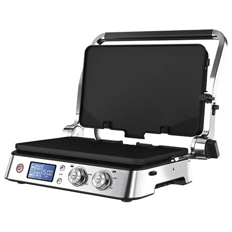 Maximális sokoldalúság az érintkező, a nyitott és a sütő helyzetnek köszönhetően. Két független elektronikus hőmérséklet-szabályozó - Lehetővé teszi, hogy az egyes sütőlapok hőmérsékletét külön-külön szabályozd, így egyszerre kétfajta ételt készíthetsz két különböző hőmérsékleten.