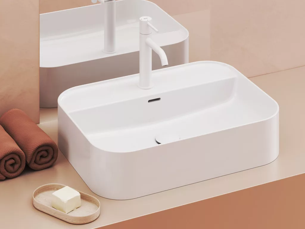 A Ceramic Slim Shelf R vékonyfalú mosdó minőségi kerámiából készült, és kizárólag I alakú mosdó alatti lapra szerelhető.