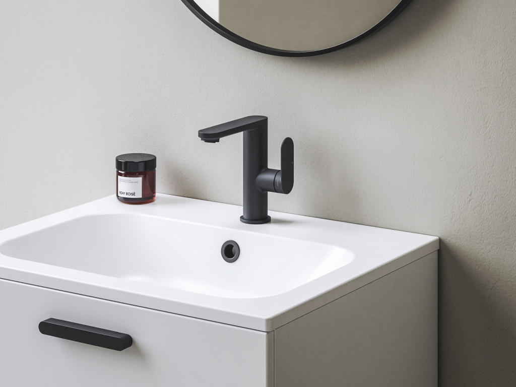 Chrome II álló mosdócsaptelep oldalsó karral, leeresztő nélkül. Fekete kivitelben. EcoFlow funkcióval, amely csökkenti a vízfogyasztást.