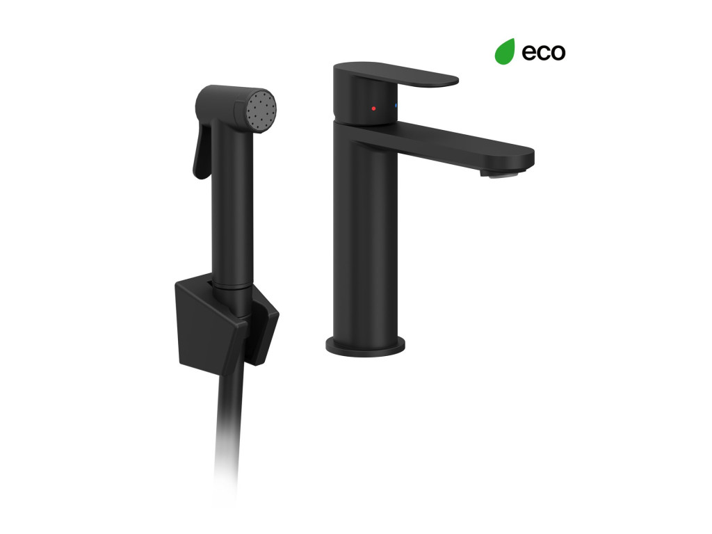 Chrome II álló mosdócsapteleo bidézuhannyal, leeresztő nélkül. Fekete kivitelben.