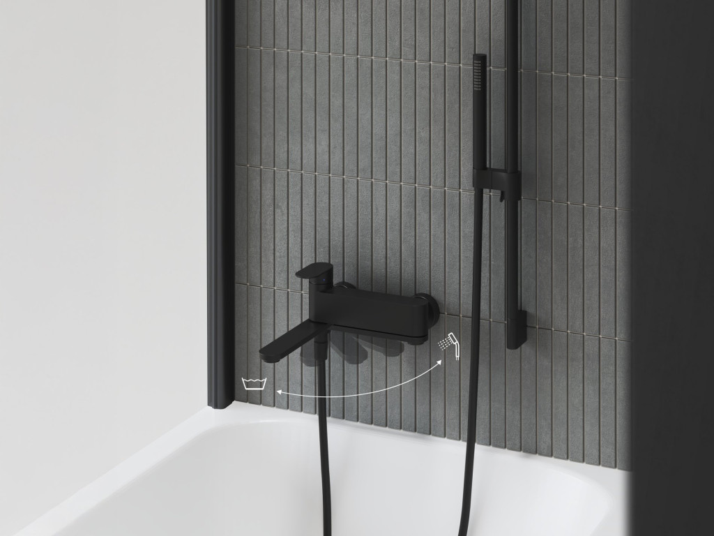 Chrome II fali kádcsaptelep forgatható váltókarral, zuhanykészlet nélkül. Fekete kivitelben.