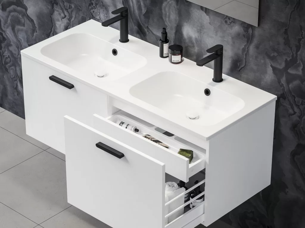 • választható kiegészítők: mosdócsapok, szifonok, Chrome vízvezeték csaptelepek, Chrome 120 dupla mosdó alatti szekrény, tükör, fürdőszoba kiegészítők