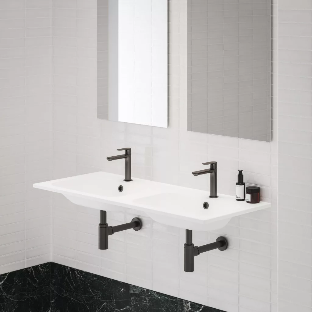 A piacon a legszélesebb, dizájnban összehangolt, termékcsalád része. A Chrome Slim dupla mosdót a falra lehet szerelni, vagy kiegészíteni a Chrome SD 120 alatti szekrénnyel és két Chrome 60 tükörrel. A szerelőkészlet (csatlakozó dübelek, csavarok stb.) beleértve a túlfolyó fedelét is a szállítás része.