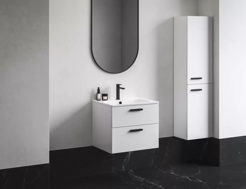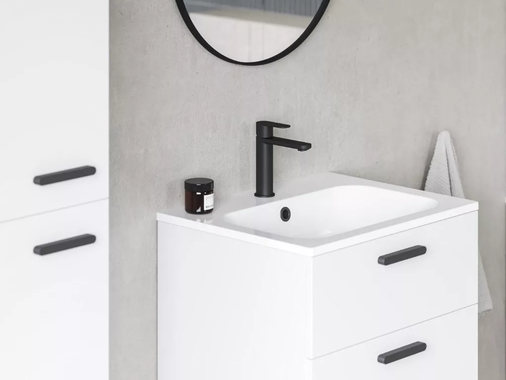 Chrome Slim öntött műmárvány mosdó falra szerelhető vagy függő szekrénybe beépíthető, túlfolyóval. Fehér design.