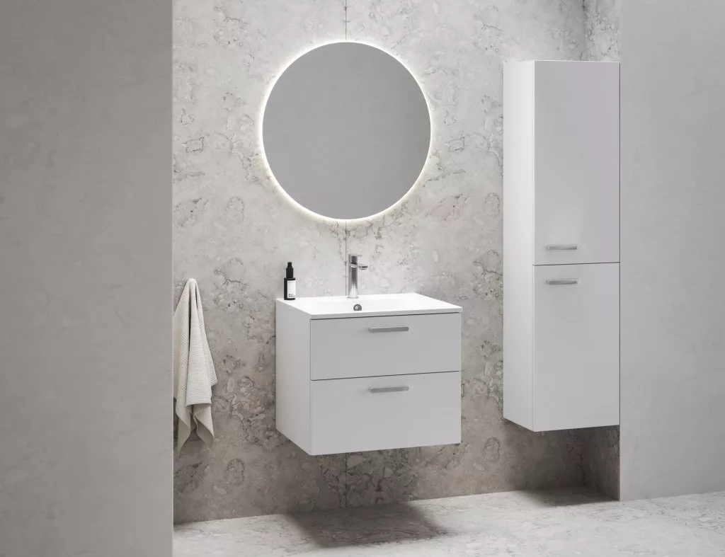Chrome Slim öntött műmárvány mosdó falra szerelhető vagy függő szekrénybe beépíthető, túlfolyóval. Fehér design.