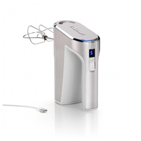 A lítium-ion akkumulátor technológiával működő és USB-n keresztül tölthető, nagy teljesítményű kézi mixer kompromisszumok nélküli teljesítményt nyújt még akkor is, ha az akkumulátor töltöttségi szintje alacsony. Egy teljes 130 perces töltés elegendő energiát biztosít körülbelül 20 perc folyamatos használathoz, a recepttől függően. Az akkumulátor töltöttségi szintje követhető a kijelzőn. A tartozékok mosogatógépben moshatók a könnyű tisztítás érdekében.
