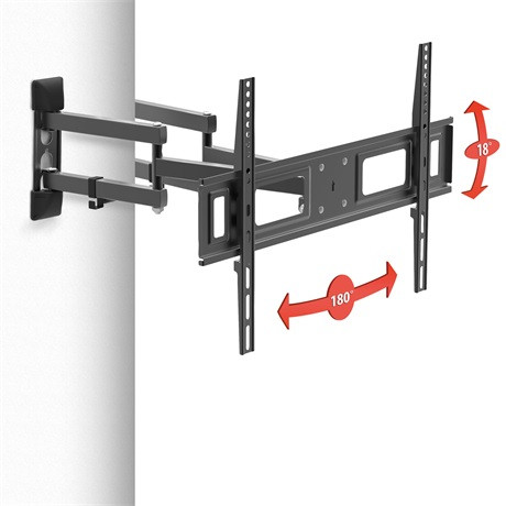 Fali tartókonzol TV-k, monitorok és egyéb VESA konzol kompatibilis eszközök rögzítéséhez. A szétnyitható tartókaroknak köszönhetően a sarkot vagy faltörést alkotó két falra is rögzíthető, legyen az belső vagy akár külső sarok. A TV a sarokban történő rögzítést követően is forgatható, dönthető marad. A masszív, erős tartás és a speciális helyekre történő rögzíthetőség érdekében dupla karral ellátott.