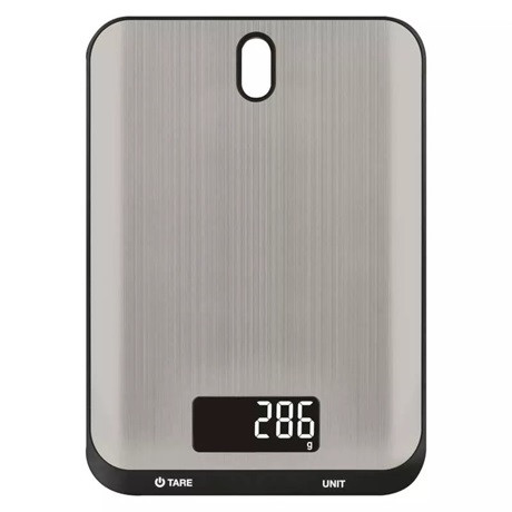 A rozsdamentes acél mérleg letisztult dizájnnal rendelkezik és egyszerűen kezelhető.
