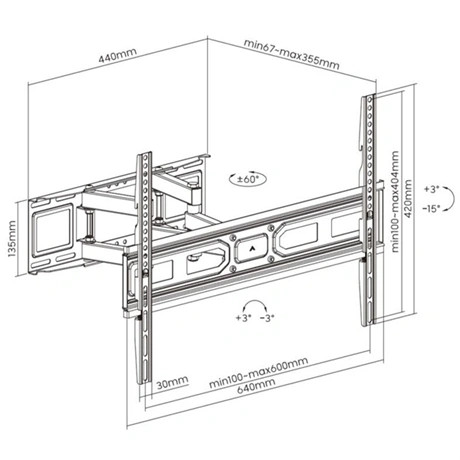 Az Equip® 650337 TV fali konzol egy kompakt, de robusztus termék, amely biztosítja az LCD/LED TV megbízható telepítését.
