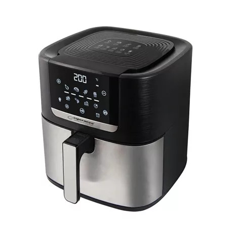 Az Esperanza POLLO FRITTO olajmentes légkeveréses fritőz tökéletes választás azok számára, akik szeretik a hagyományos ételek ízét, de egészségesebb és modernebb formában. A forró levegő keringtetéses technológiának köszönhetően ropogós sült krumplit, szaftos csirkét, halat vagy zöldségeket készíthetsz vele mindezt olaj hozzáadása nélkül, gyorsan és kényelmesen. A nagy, 8 literes űrtartalom ideálissá teszi az egész család számára történő ételek elkészítéséhez. Az intuitív kezelőpanel 8 előre beállított programmal egyszerűvé teszi a kezelést, míg a kiolvasztás funkció és a késleltetett indítás (akár 24 óra) még sokoldalúbbá teszi. Az állítható hőmérséklet és időzítő beállítások lehetővé teszik a főzési folyamat finomhangolását bármilyen ételhez. A csúszásgátló lábak stabilitást biztosítanak, a készülék modern kialakítása pedig zökkenőmentesen illeszkedik bármilyen konyhába.