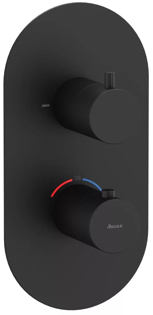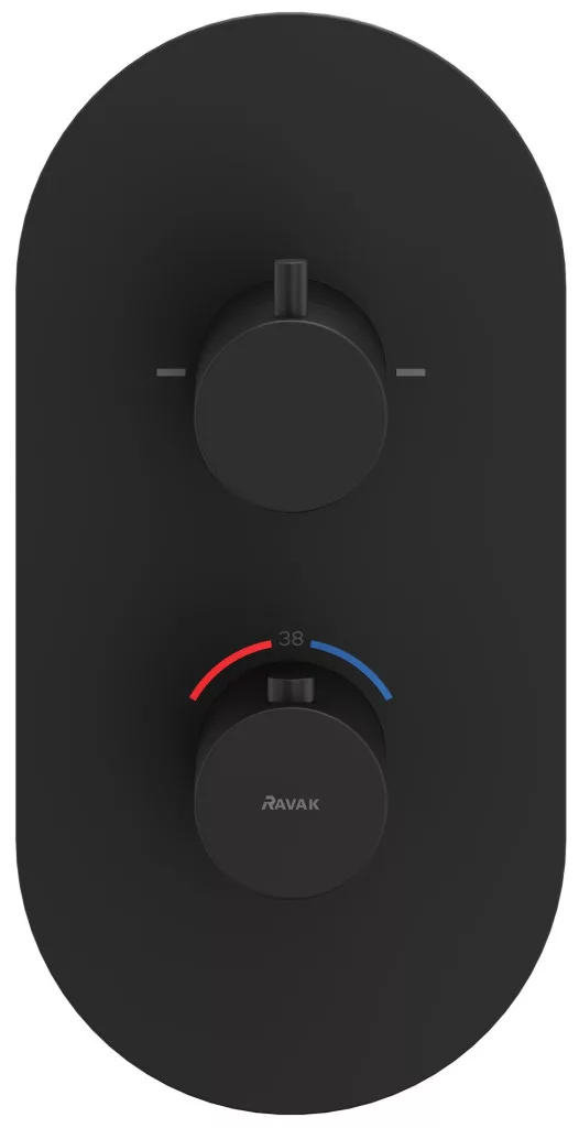 Ravak Espirit falba süllyesztett termosztátos csaptelep, kétutas, beslő egység nélkül ES 063.20BLM.O2.RB07C, matt fekete