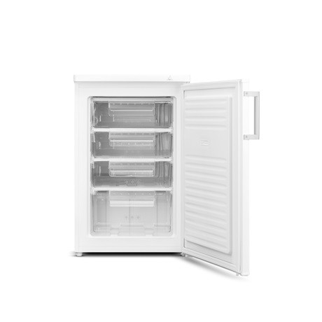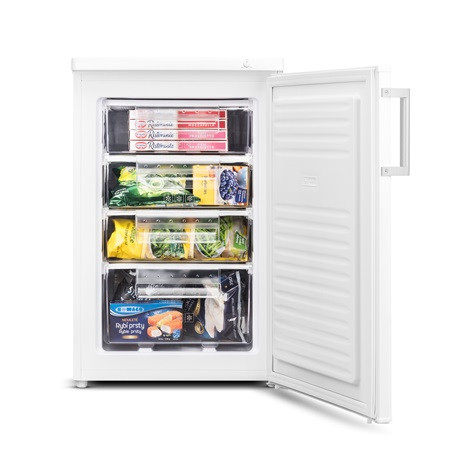 Négy átlátszó fiók garantálja az élelmiszerek tiszta tárolását. A mechanikus szabályozás nagyon egyszerű, atermosztát segítségével könnyedén beállíthatja a kívánt hőmérsékletet. A fagyasztó a rendkívül hatékony négycsillagos fagyasztási osztályba tartozik, akár 4 kg élelmiszert 24 óra alatt lefagyaszt, és teljesen lefagyasztva akár 12 órán keresztül is megőrzi. áramszünet esetén.
