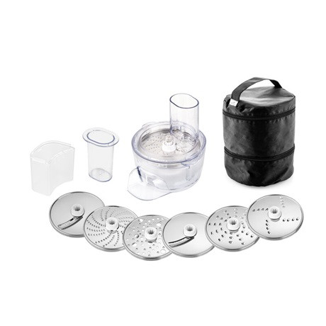 * Reszelő tartozék 6 lemez reszelővel és védő tokkal + optimális fordulatszámot biztosító sebességváltó