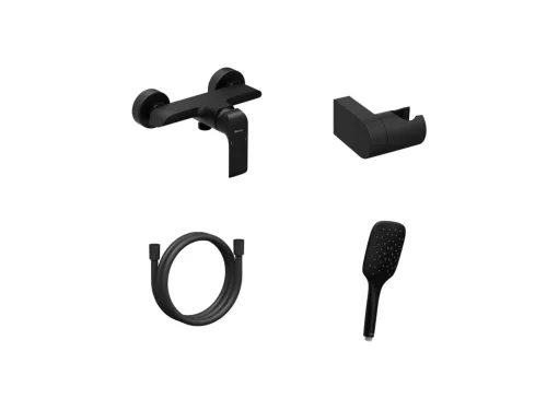 Flat falra szerelhető zuhanycsaptelep zuhanyszettel. Matt fekete kivitelben.