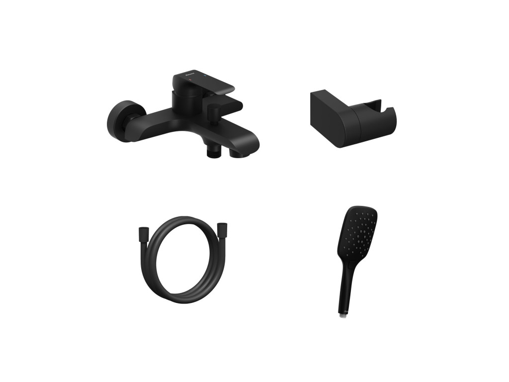 Flat falra szerelhető kádcsaptelep zuhanyszettel. Matt fekete kivitelben.