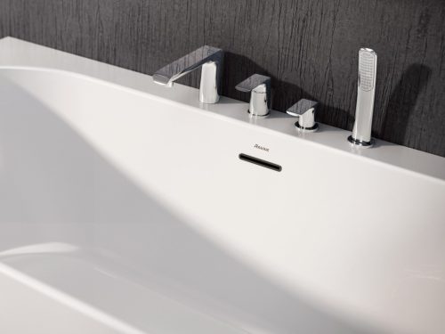 A Flat kádperem csaptelep, négylyukú, a kád szélére szerelhető, zuhanykészlettel. Króm színben.
