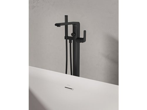 Flat padlón álló kádcsaptelep, íves, matt fekete kivitelben.