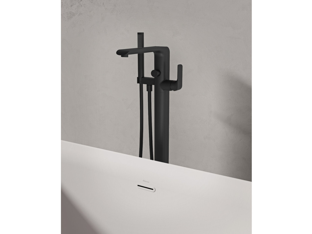 Ravak Flat padlón álló kádcsaptelep szettel FL 080.20BLM.RB07A, matt fekete