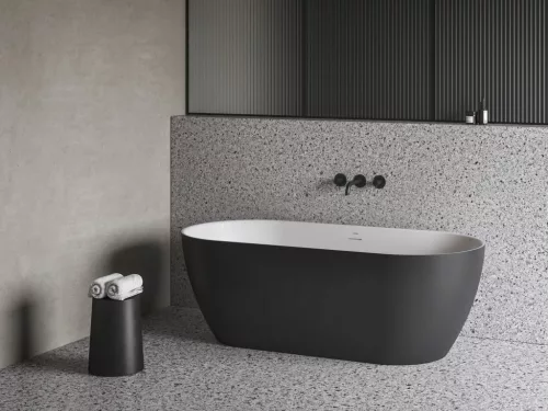 Ne korlátozza magát. Lazítson. A Freedom O Tec szabadon álló kád fokozatosan ívelt vonalai nyugtató légkört teremtenek a fürdőszobában és kellemesen körbeölelik Önt. Keskenyített felső peremmel. Fekete kivitelben.