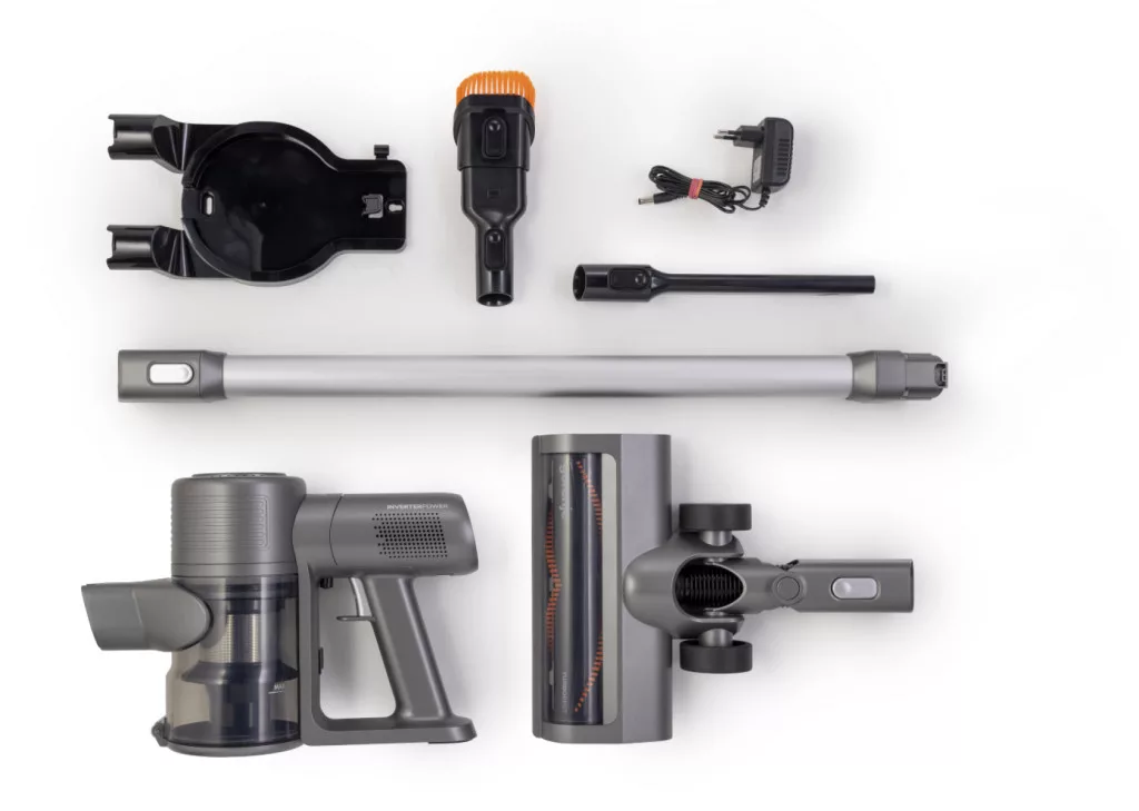 -Találd meg a csomagban az összes tartozékot, amire szükséged van a tökéletes tisztasághoz: 2 fúvókát (hosszú & 2 az 1-ben), motoros turbókefét, falra szerelhető tartót és adaptert.