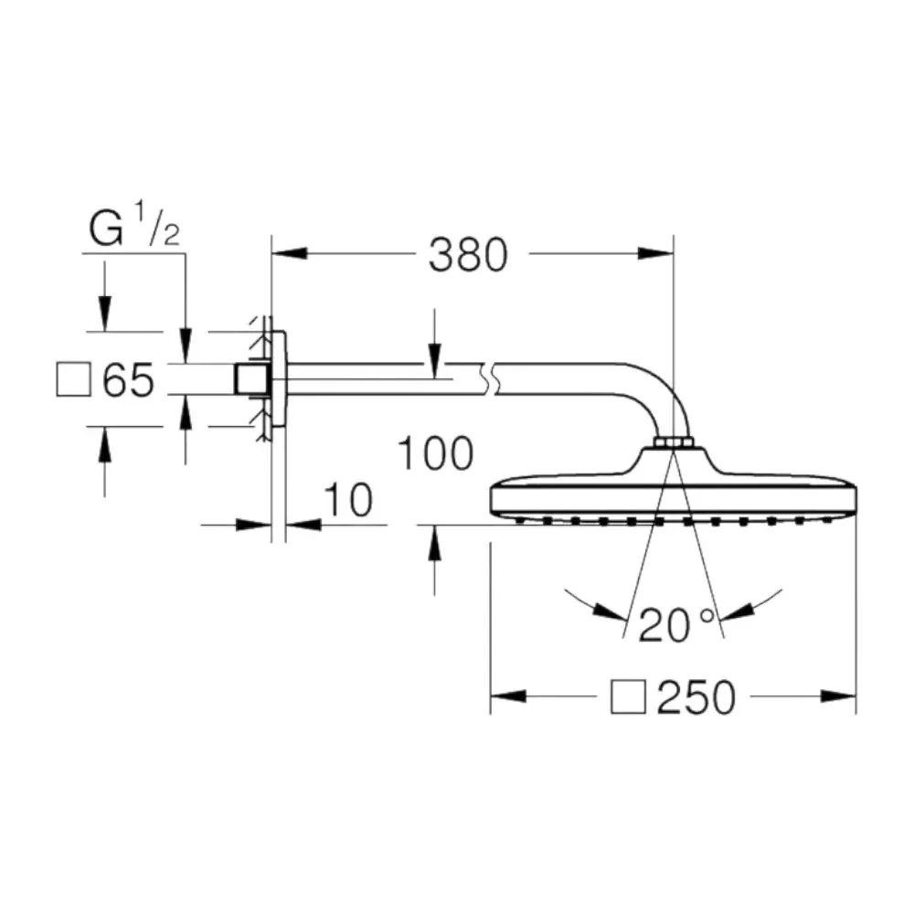 -Fejzuhany átmérő / méret: 250 mm (szögletes fejzuhany)