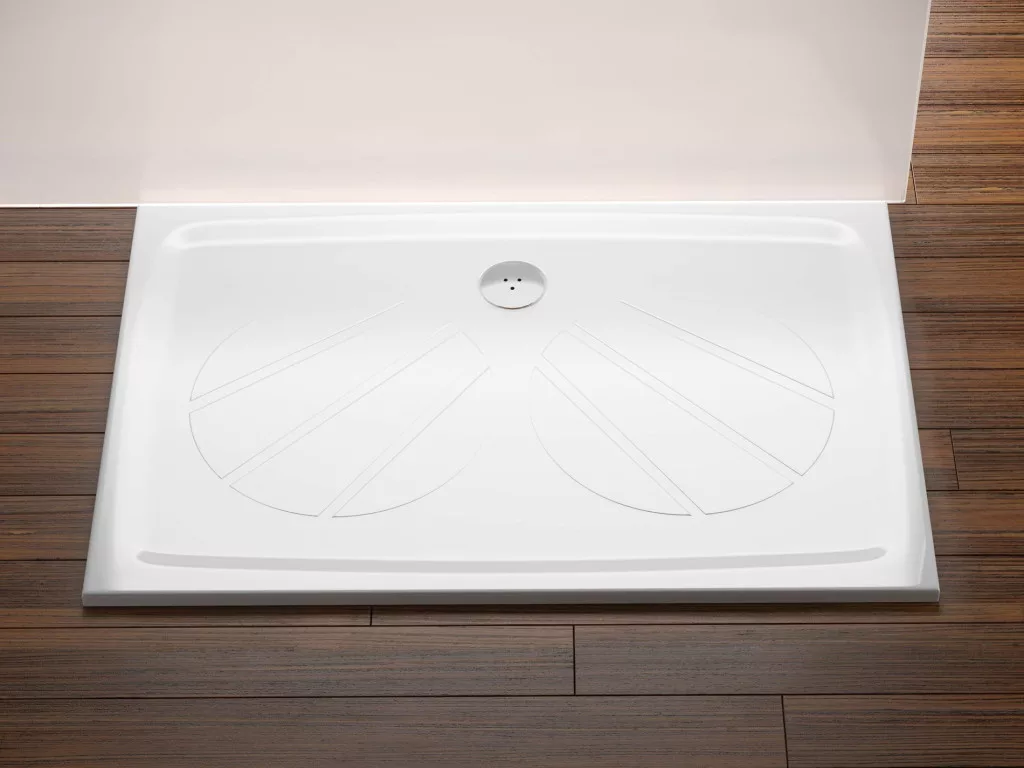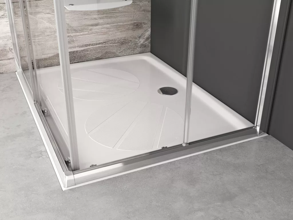 Téglalap alakú Gigant Pro zuhanytálca öntött márványból, fehér színben. Csúszásgátló bevonattal a nagyobb biztonság érdekében.