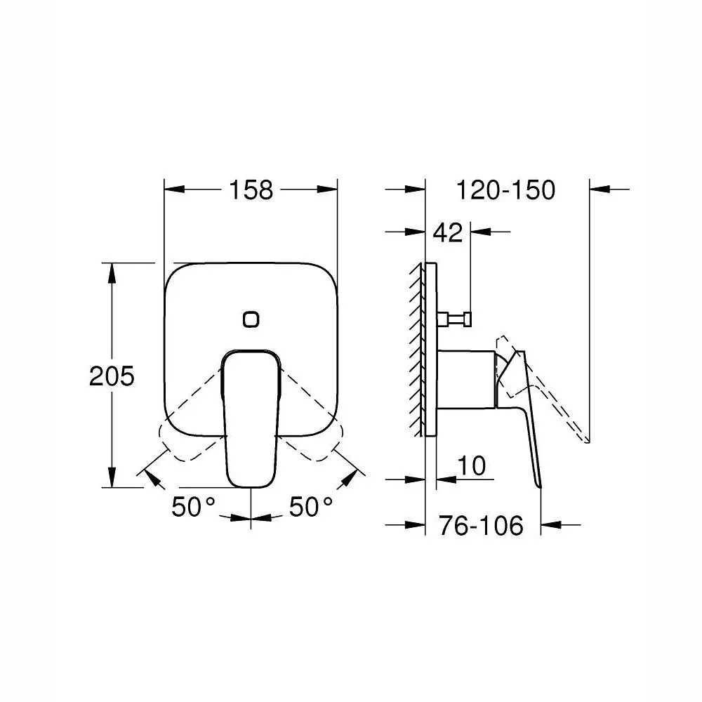 -Falba építhető egykaros zuhanycsaptelep zuhanyszett nélkül