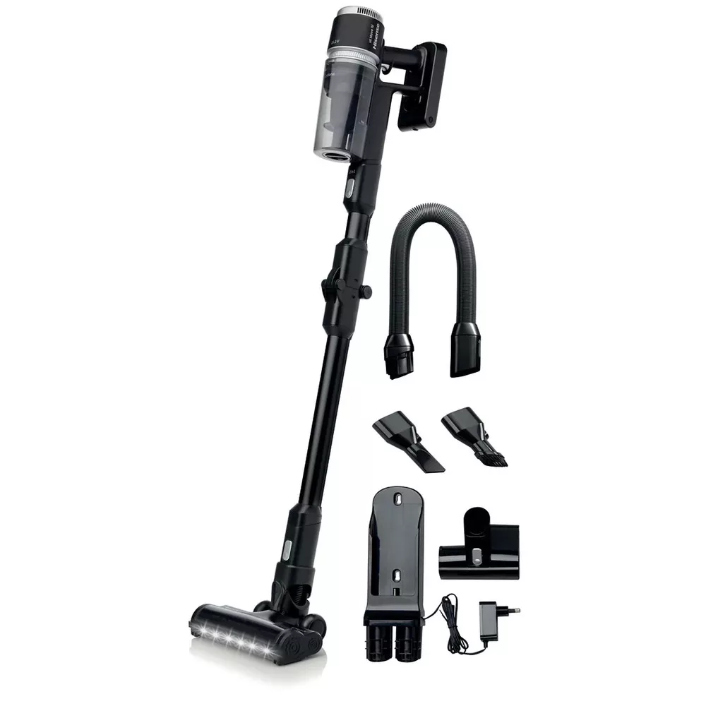 -Tartozékok: alumínium összecsukható szívócső, rugalmas cső, motoros turbókefe, résszívó fej, poroló kefe, ágy-/bútor-kefe, 4 db gumi görgő