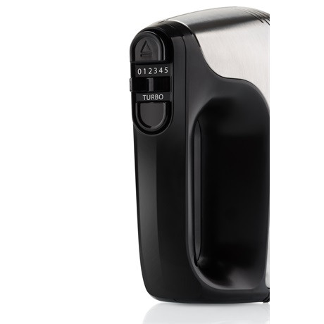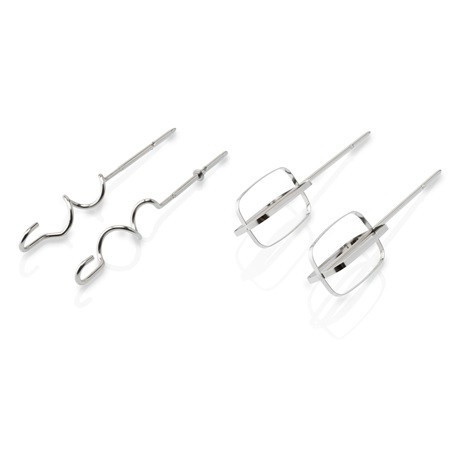Erőteljes habverő 400 W teljesítménnyel és 5 sebességgel. A csomag két habverőt és két dagasztóhorgot tartalmaz.