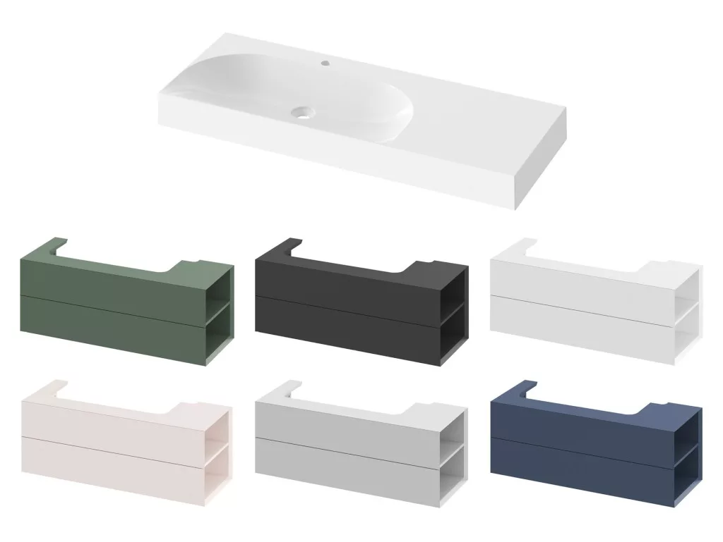 • megvásárolható tartozékok: fix mosdólefolyó, mosdószifon, mosdócsaptelep, SD Lite 120 vagy SD Lite 120 jobb mosdószekrény