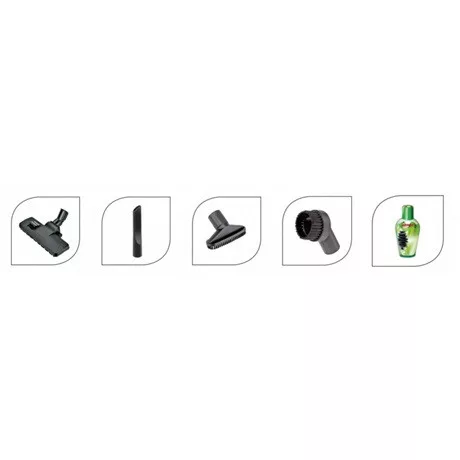 • Tartozékok: padló- és szőnyegfej, résszívó, reluxa és kárpit tisztító kefe, légfrissítő