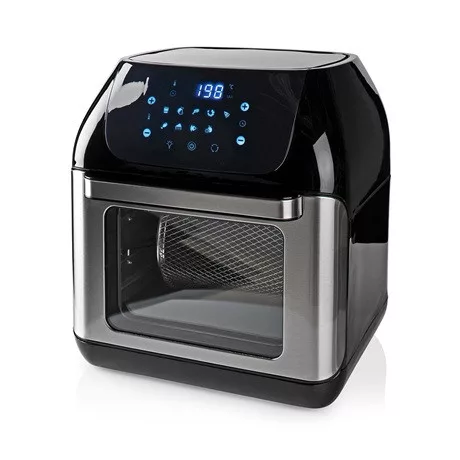 A forrólevegős sütő 12 liter űrtartalmú, így 65–200 °C-os hőmérsékleten nagy mennyiségű ételt készíthet, többek között tortát, pizzát, húsokat vagy halat is. 1500 wattos teljesítménynek köszönhetően a sütő gyorsan üzemkész. Az előre beállított 9 sütési programot megjelenítő digitális kijelző révén a forrólevegős sütő egyszerűen kezelhető.