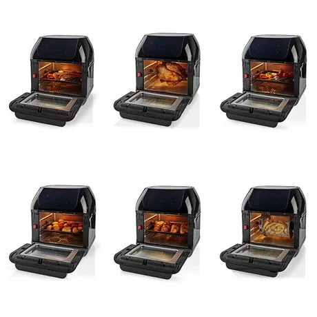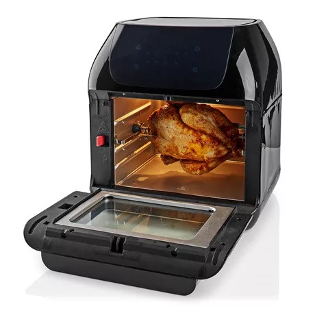 Ezzel a Nedis forrólevegős sütővel egyszerűen, egészséges módon készíthet ízletes ételeket, mivel a forrólevegő-keringetési technológiának köszönhetően nincs többé szükség olajra hasábburgonya, hús, hal és zöldségek készítésekor. Ez a többfunkciós forrólevegős sütő grillezésre, sütésre, olajban sütésre vagy akár dehidratálásra is alkalmas.