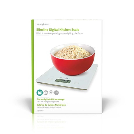 • Vékony kialakítású elektronikus konyhai mérleg 3 mm vastag edzett üveggel