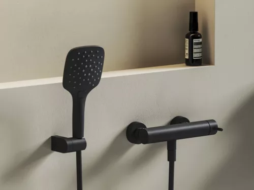 Nox fali rozsdamentes falicsaptelep, zuhanykészlet nélkül. Matt fekete kivitelben.